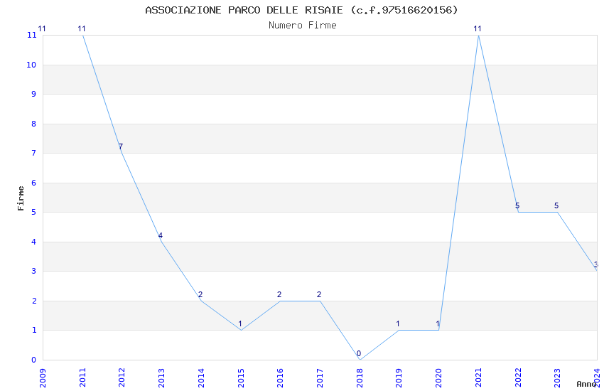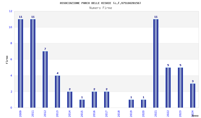| Anno | Firme | Importi | Media | Naz. | Reg. | Prov. | Comu. |