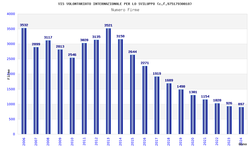 | Anno | Firme | Importi | Media | Naz. | Reg. | Prov. | Comu. |
