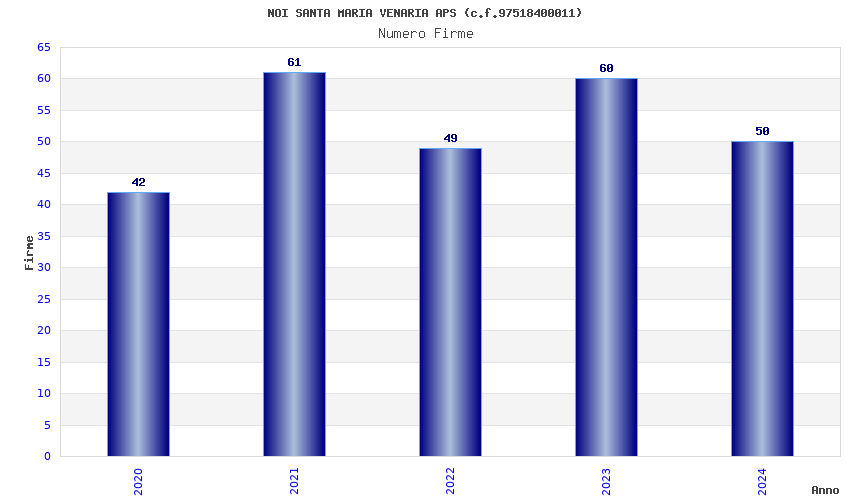| Anno | Firme | Importi | Media | Naz. | Reg. | Prov. | Comu. |
