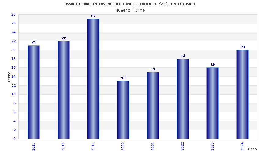 | Anno | Firme | Importi | Media | Naz. | Reg. | Prov. | Comu. |