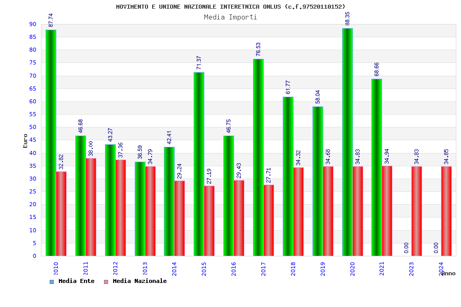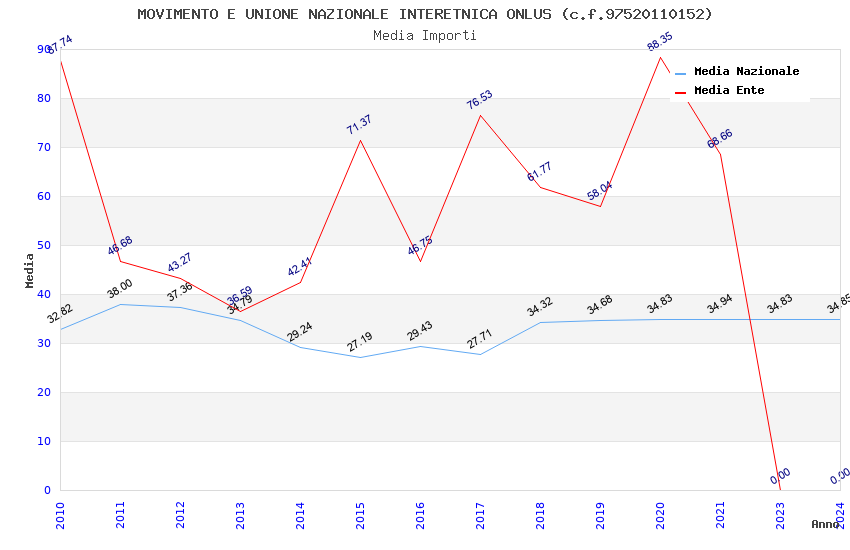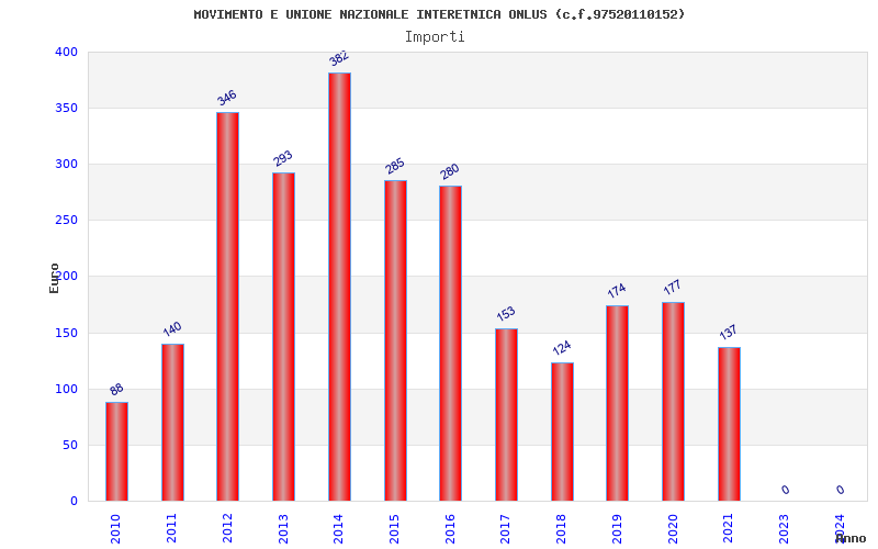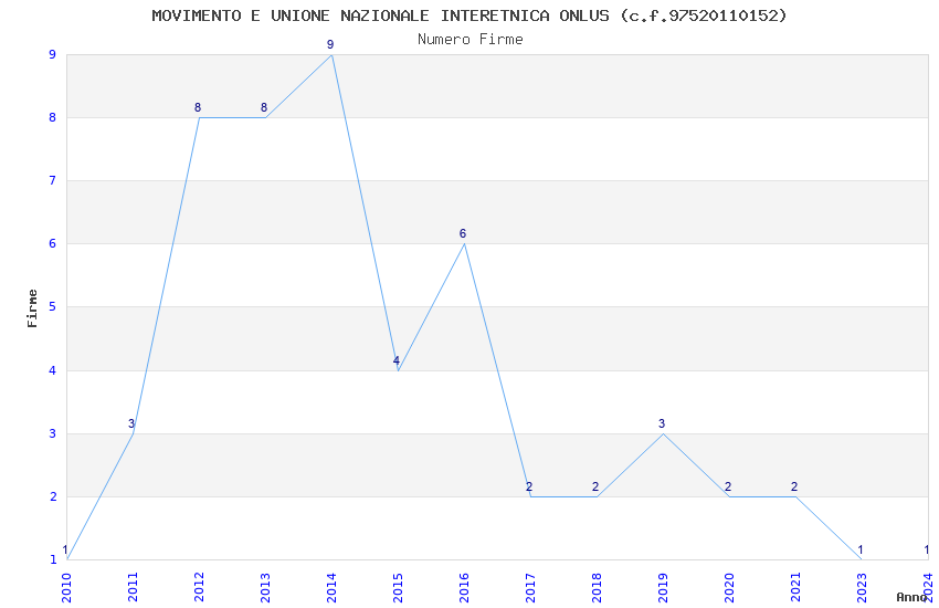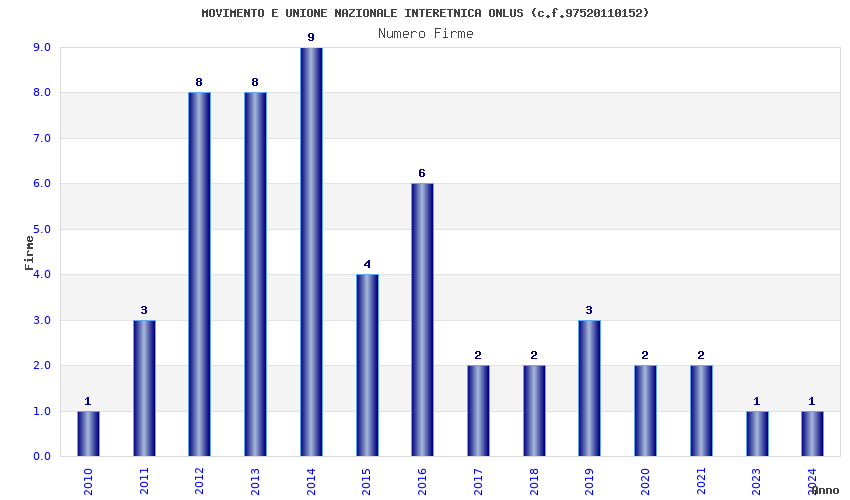 | Anno | Firme | Importi | Media | Naz. | Reg. | Prov. | Comu. |