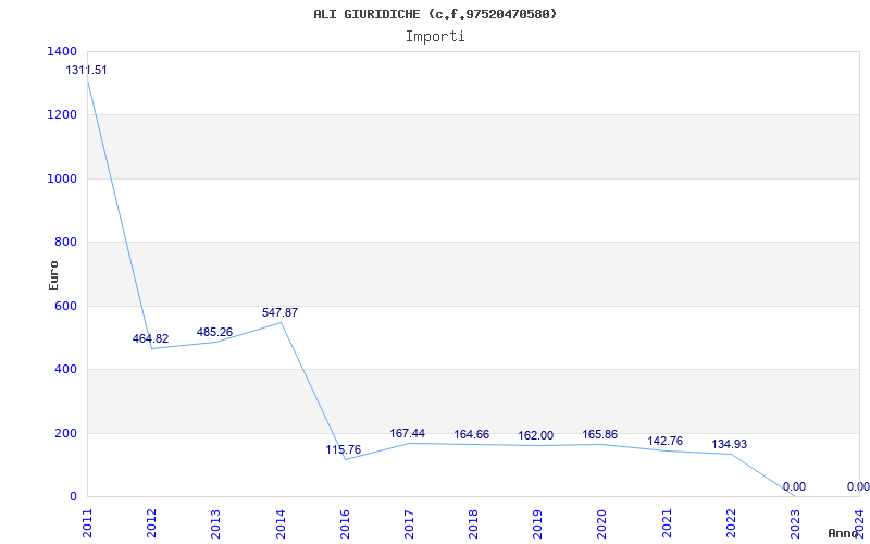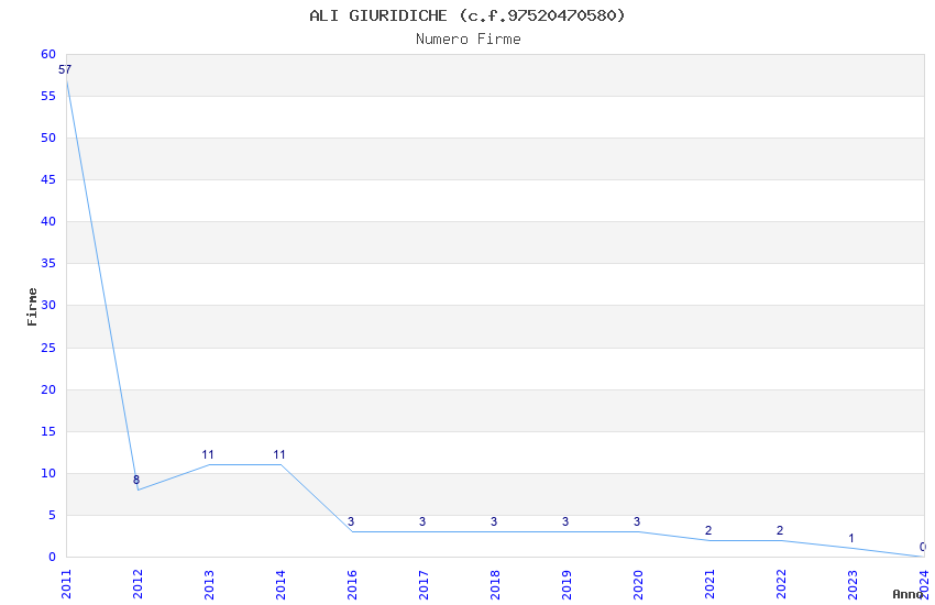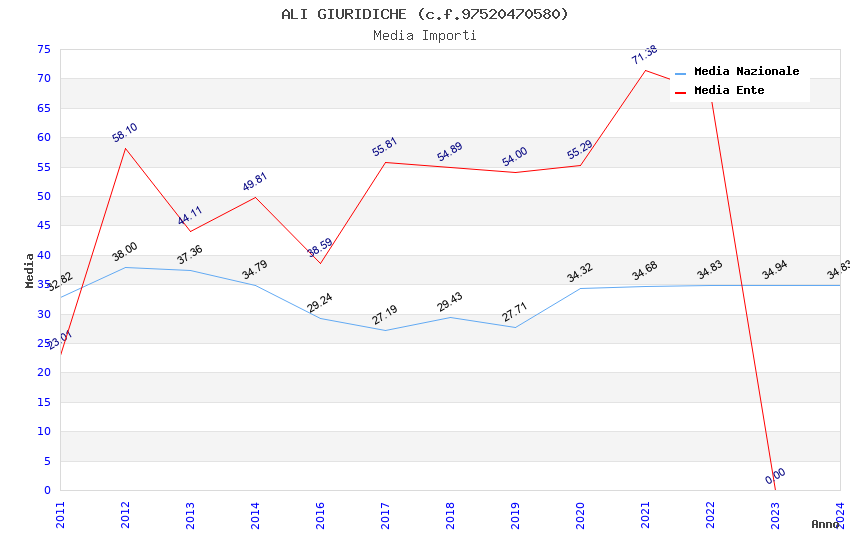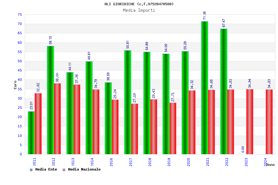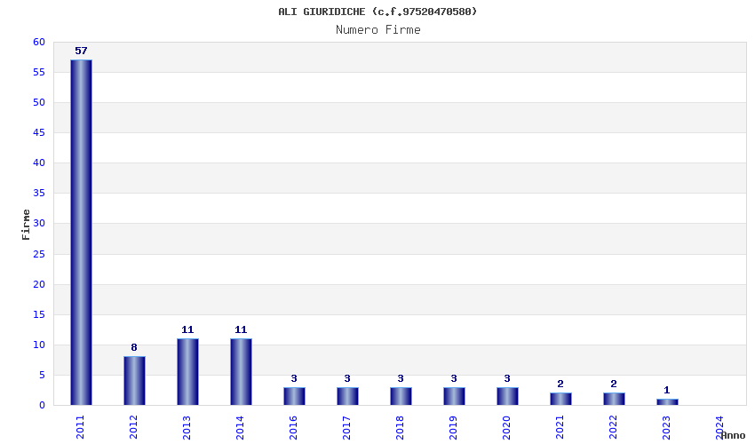 | Anno | Firme | Importi | Media | Naz. | Reg. | Prov. | Comu. |