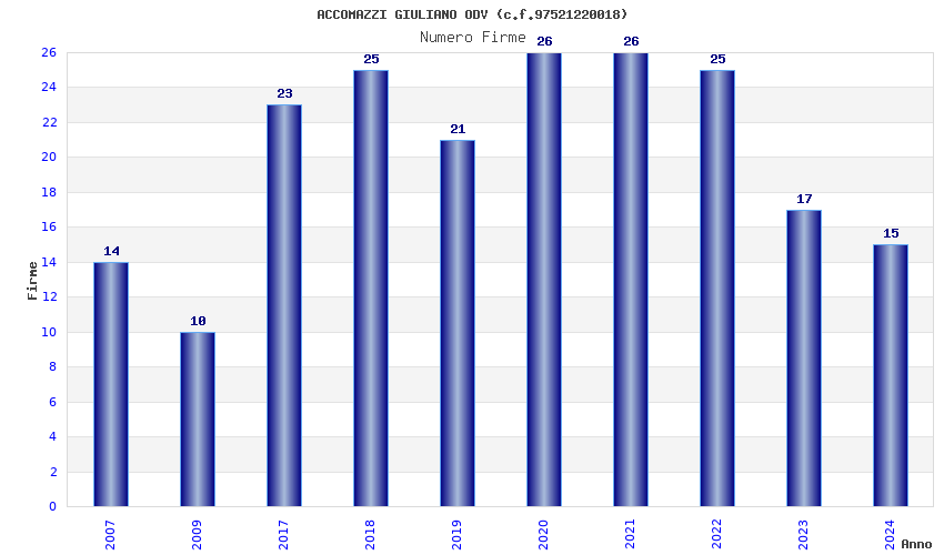| Anno | Firme | Importi | Media | Naz. | Reg. | Prov. | Comu. |