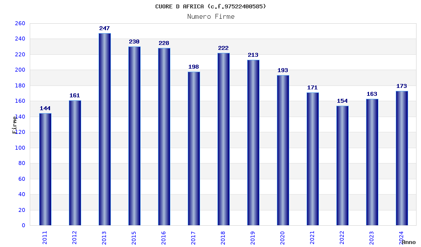 | Anno | Firme | Importi | Media | Naz. | Reg. | Prov. | Comu. |