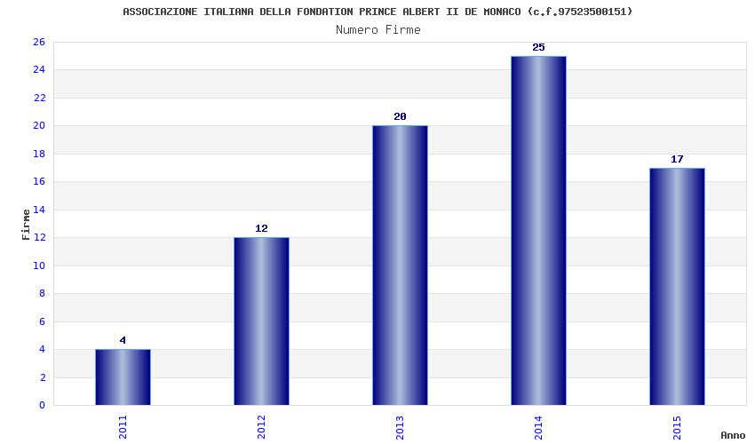 | Anno | Firme | Importi | Media | Naz. | Reg. | Prov. | Comu. |