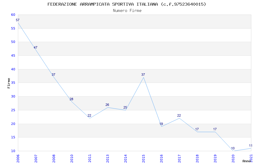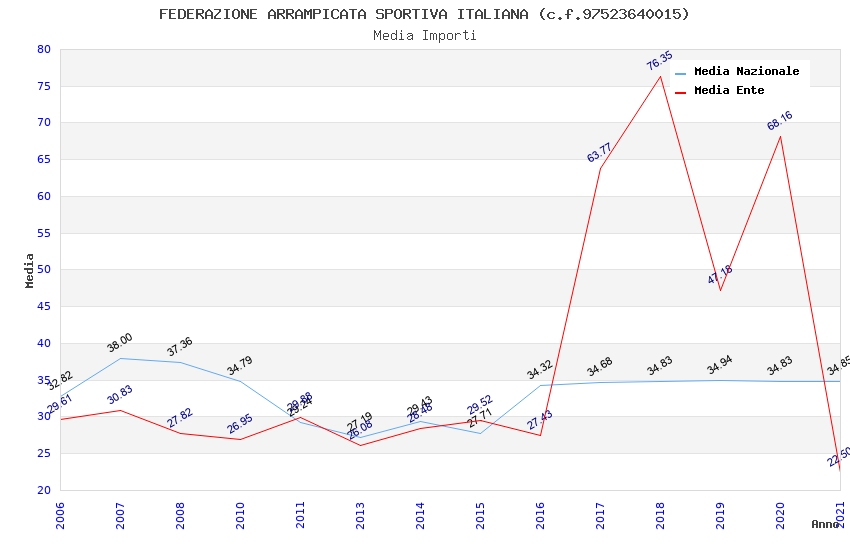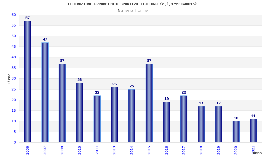 | Anno | Firme | Importi | Media | Naz. | Reg. | Prov. | Comu. |
