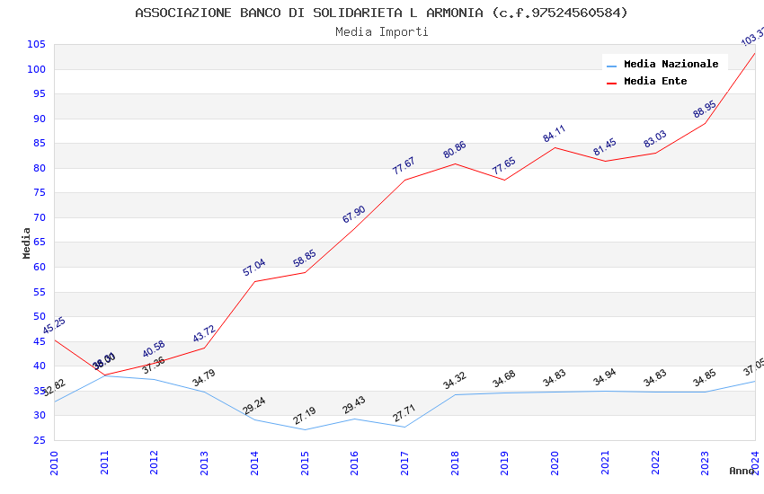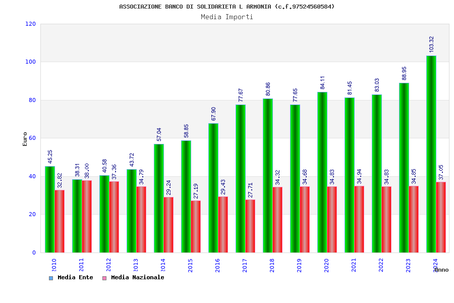| Anno | Firme | Importi | Media | Naz. | Reg. | Prov. | Comu. |