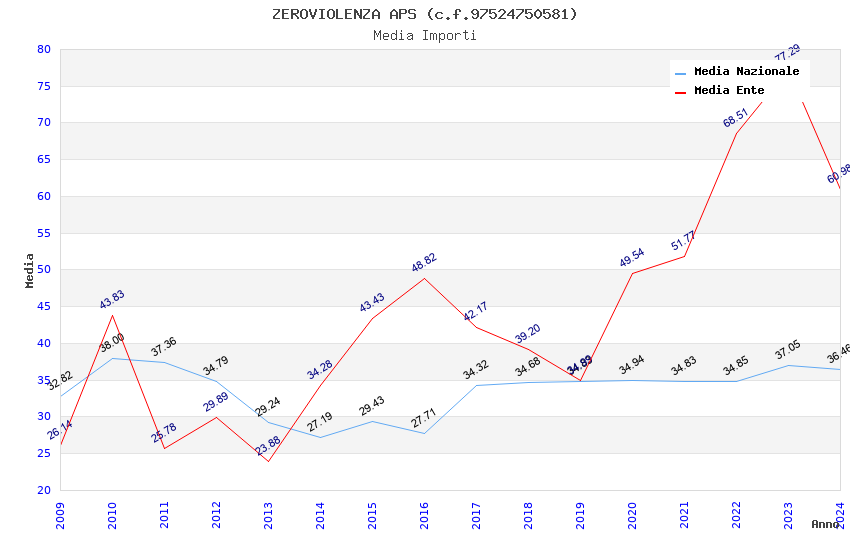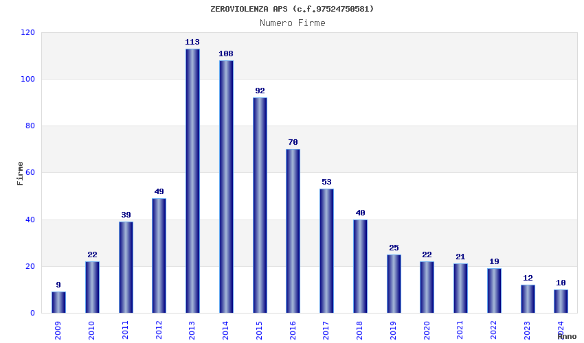 | Anno | Firme | Importi | Media | Naz. | Reg. | Prov. | Comu. |