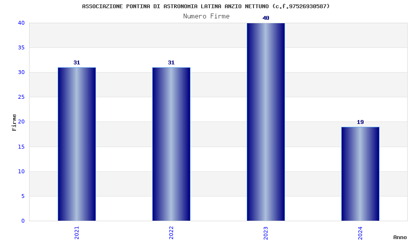 | Anno | Firme | Importi | Media | Naz. | Reg. | Prov. | Comu. |
