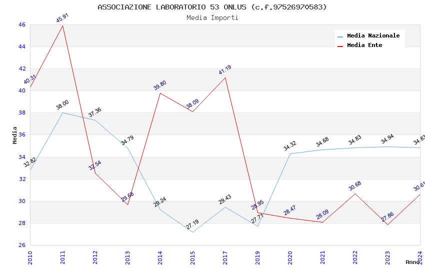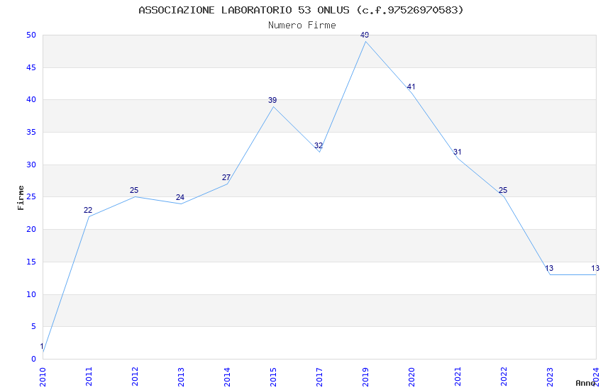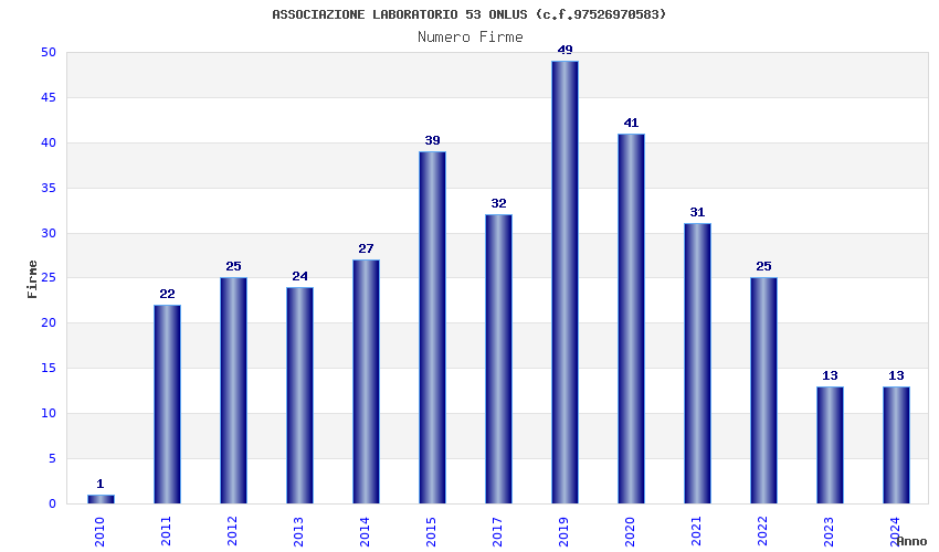 | Anno | Firme | Importi | Media | Naz. | Reg. | Prov. | Comu. |