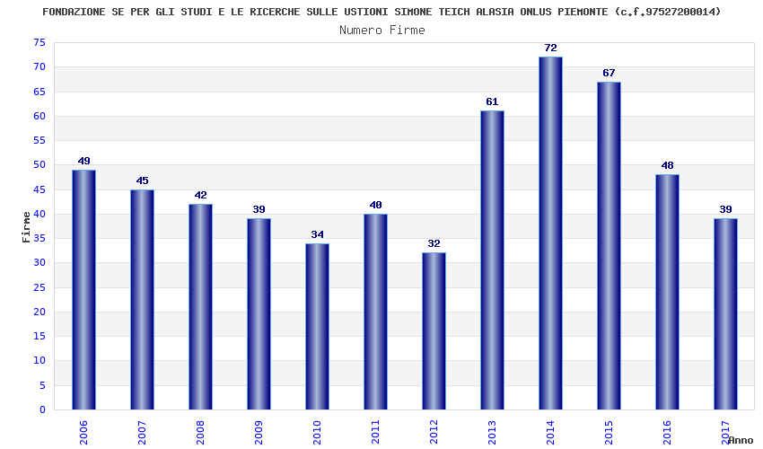 | Anno | Firme | Importi | Media | Naz. | Reg. | Prov. | Comu. |