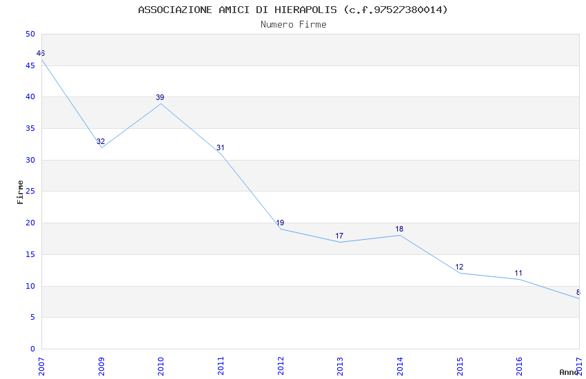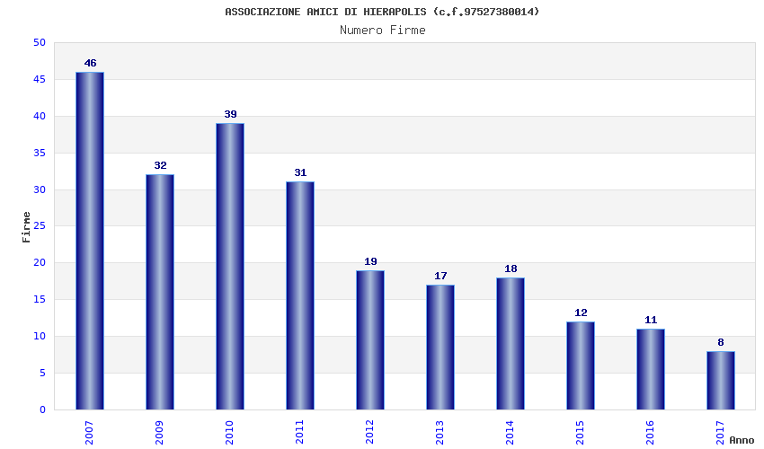 | Anno | Firme | Importi | Media | Naz. | Reg. | Prov. | Comu. |