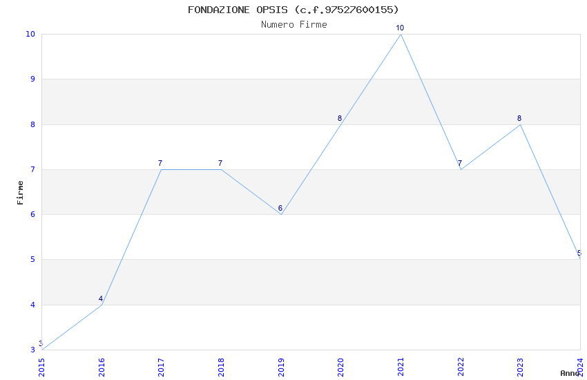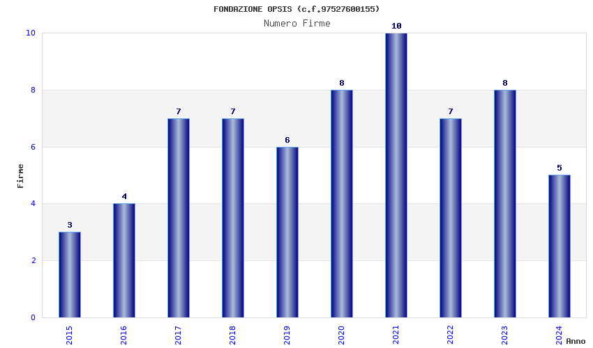 | Anno | Firme | Importi | Media | Naz. | Reg. | Prov. | Comu. |