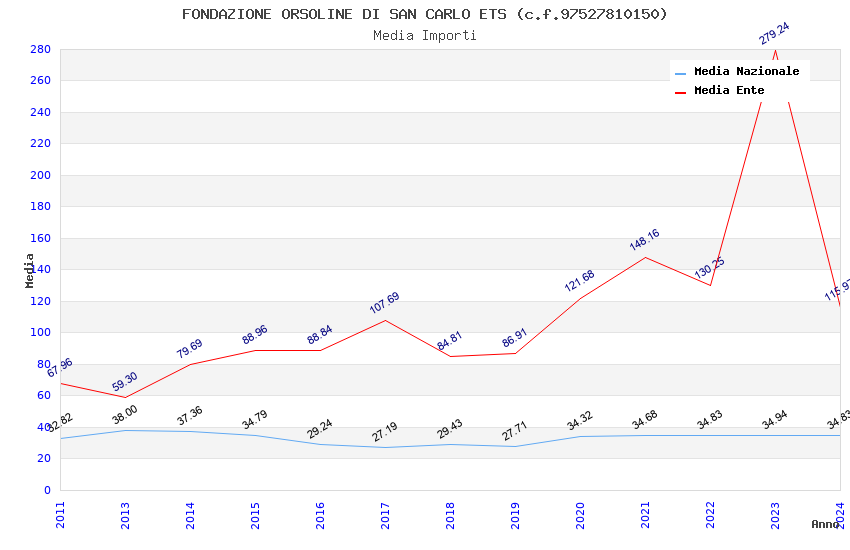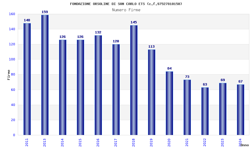 | Anno | Firme | Importi | Media | Naz. | Reg. | Prov. | Comu. |