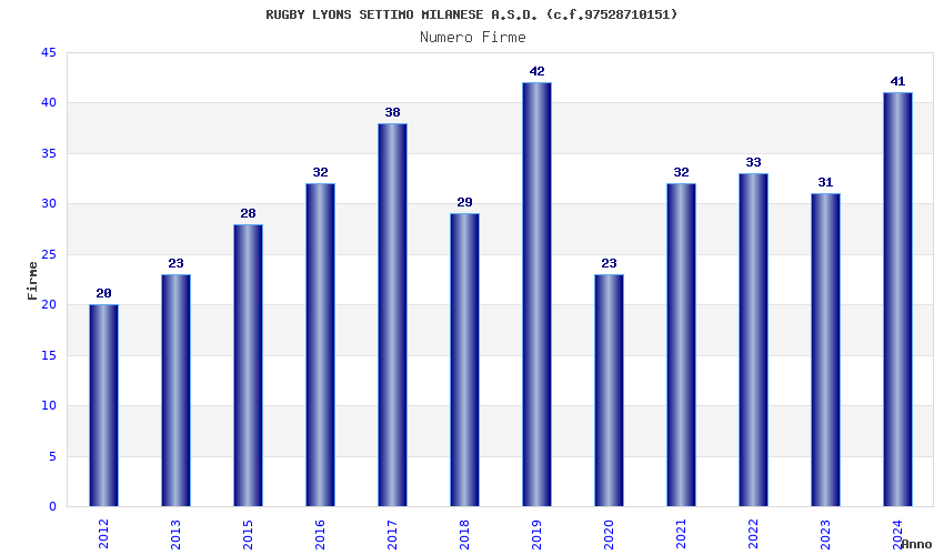 | Anno | Firme | Importi | Media | Naz. | Reg. | Prov. | Comu. |