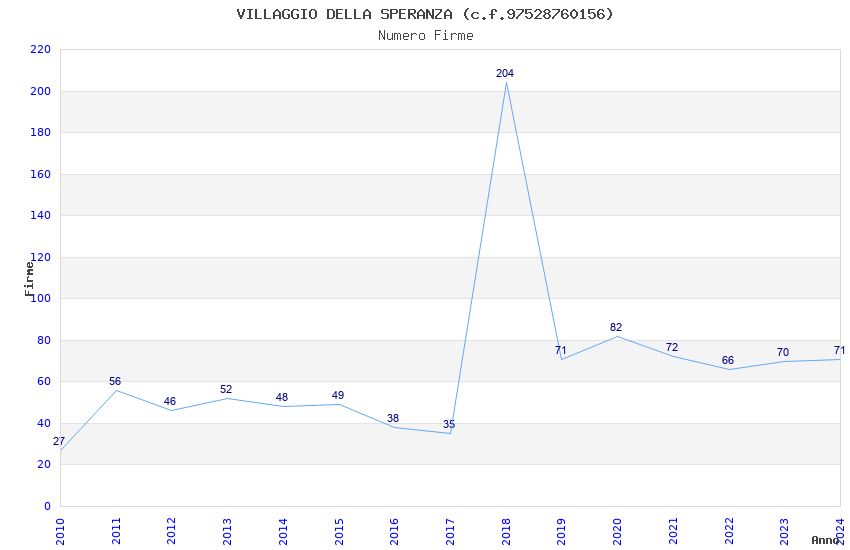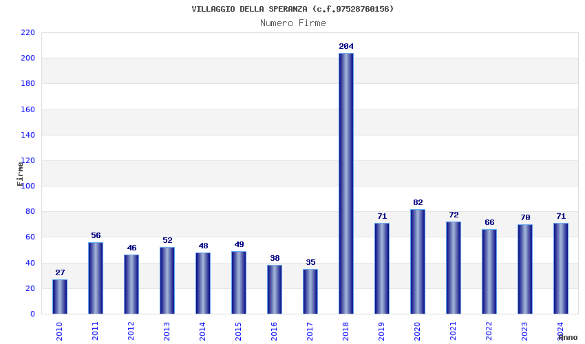 | Anno | Firme | Importi | Media | Naz. | Reg. | Prov. | Comu. |