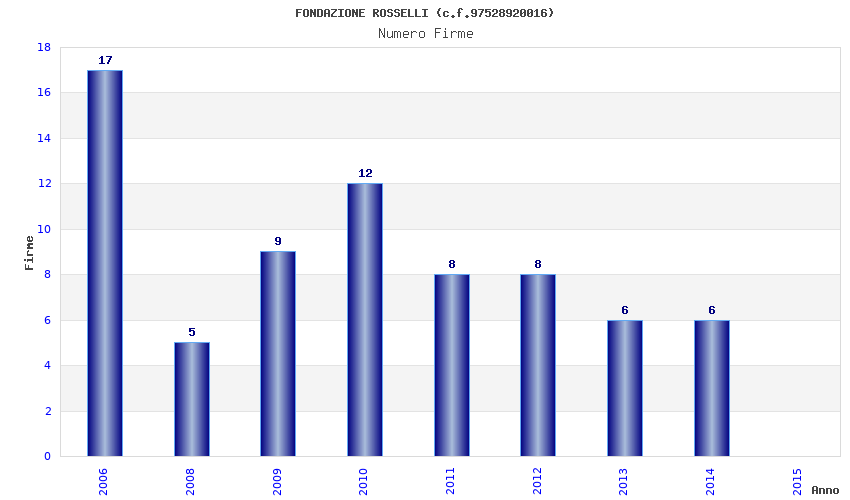 | Anno | Firme | Importi | Media | Naz. | Reg. | Prov. | Comu. |