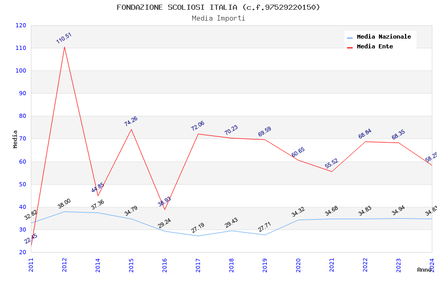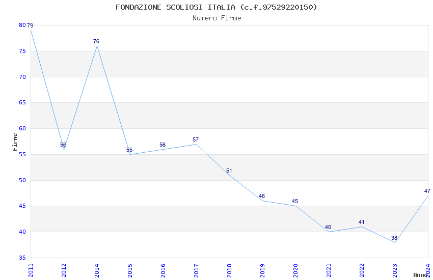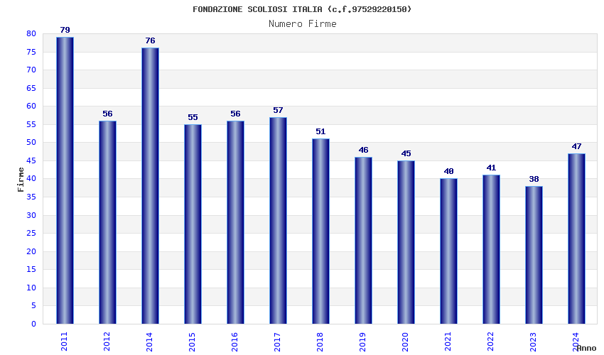 | Anno | Firme | Importi | Media | Naz. | Reg. | Prov. | Comu. |