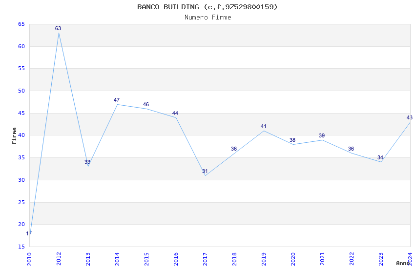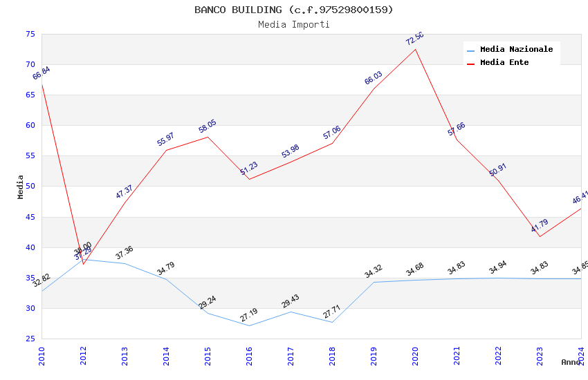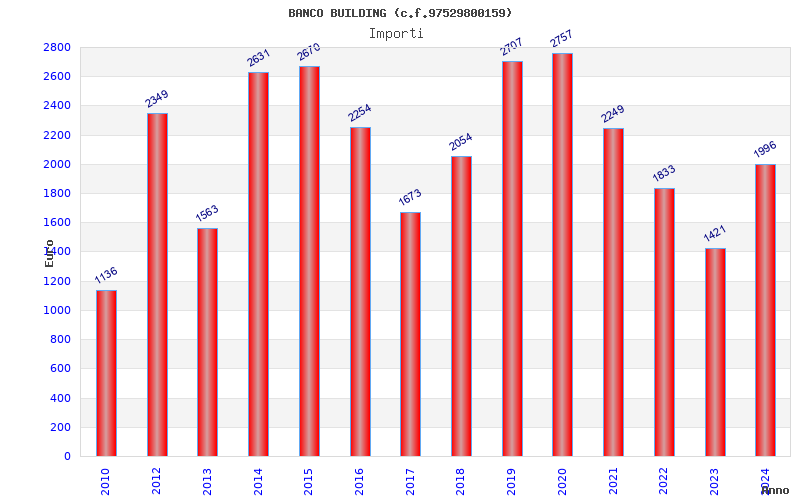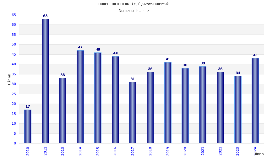 | Anno | Firme | Importi | Media | Naz. | Reg. | Prov. | Comu. |