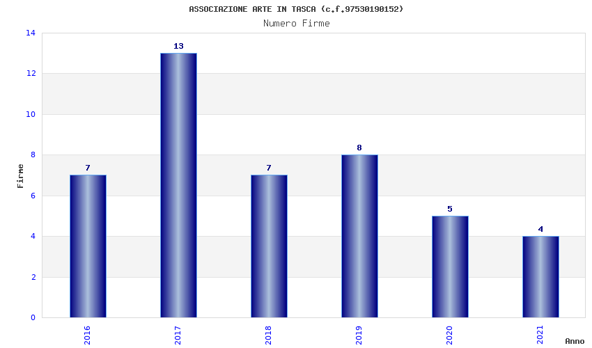 | Anno | Firme | Importi | Media | Naz. | Reg. | Prov. | Comu. |