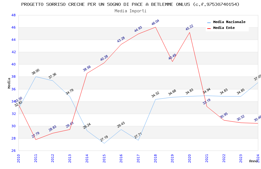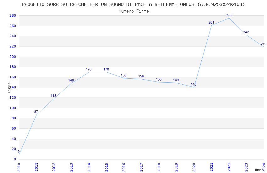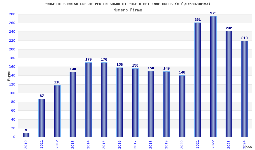| Anno | Firme | Importi | Media | Naz. | Reg. | Prov. | Comu. |