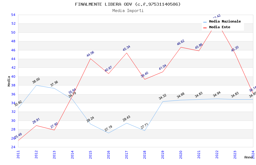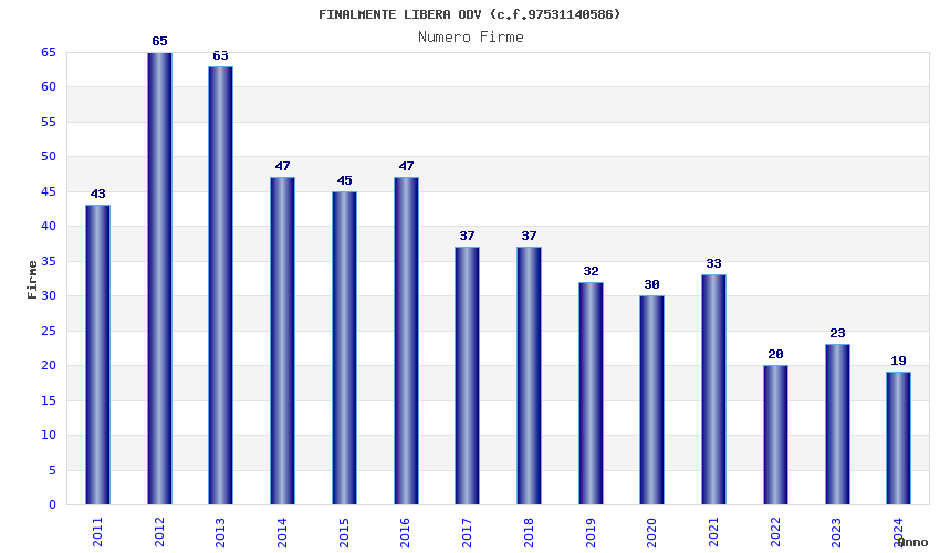 | Anno | Firme | Importi | Media | Naz. | Reg. | Prov. | Comu. |