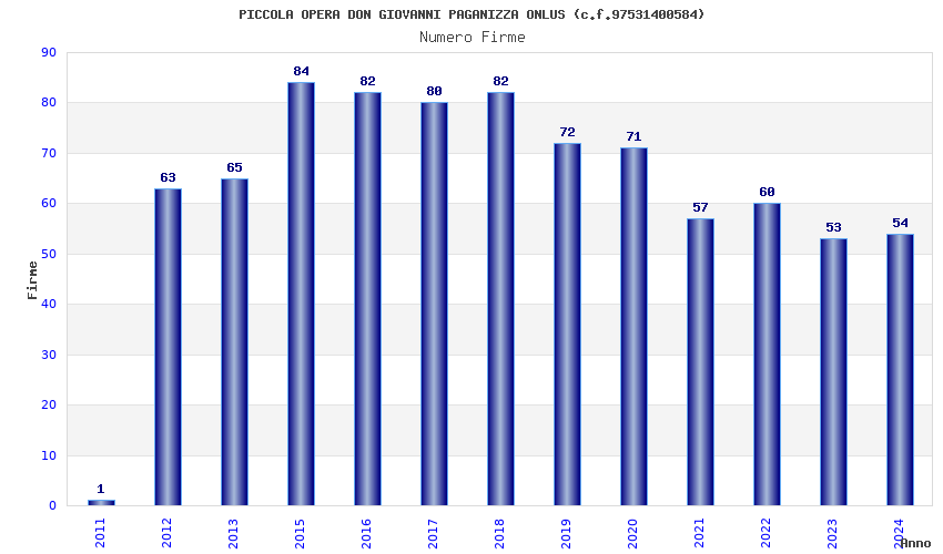| Anno | Firme | Importi | Media | Naz. | Reg. | Prov. | Comu. |