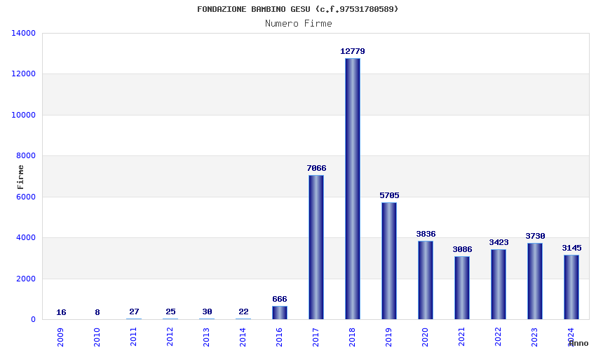 | Anno | Firme | Importi | Media | Naz. | Reg. | Prov. | Comu. |
