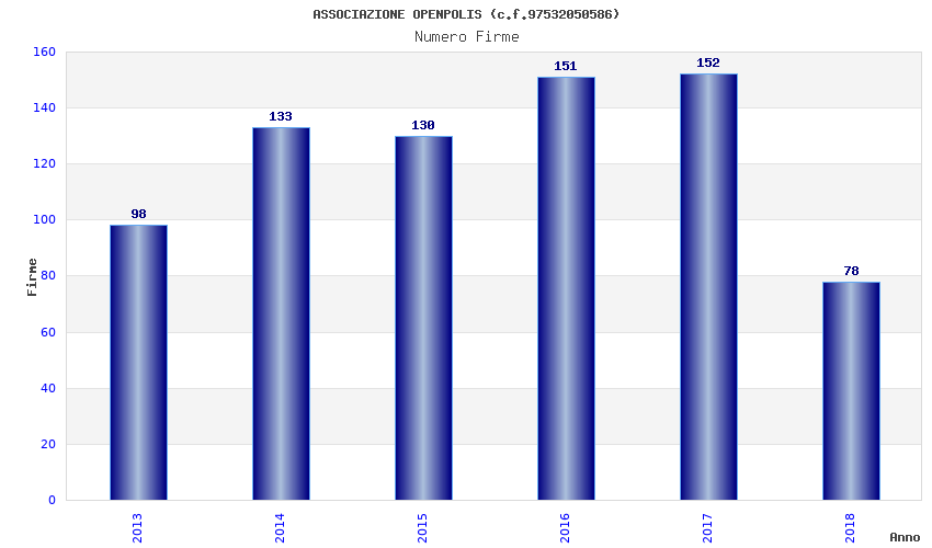 | Anno | Firme | Importi | Media | Naz. | Reg. | Prov. | Comu. |