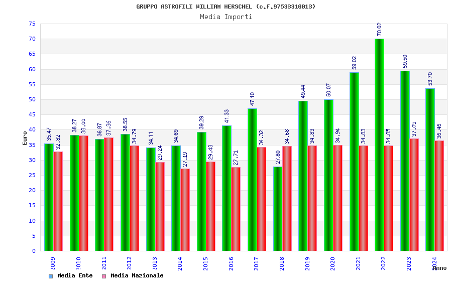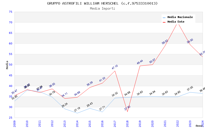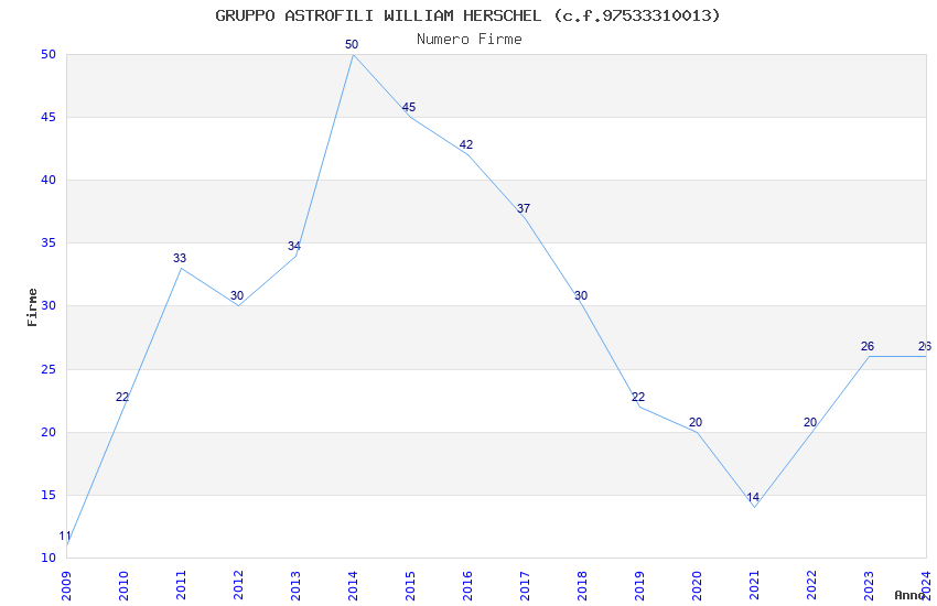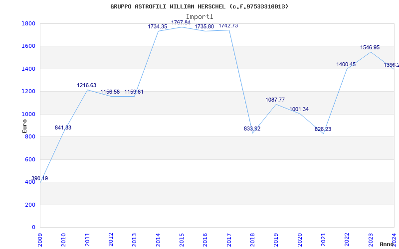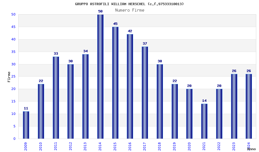 | Anno | Firme | Importi | Media | Naz. | Reg. | Prov. | Comu. |