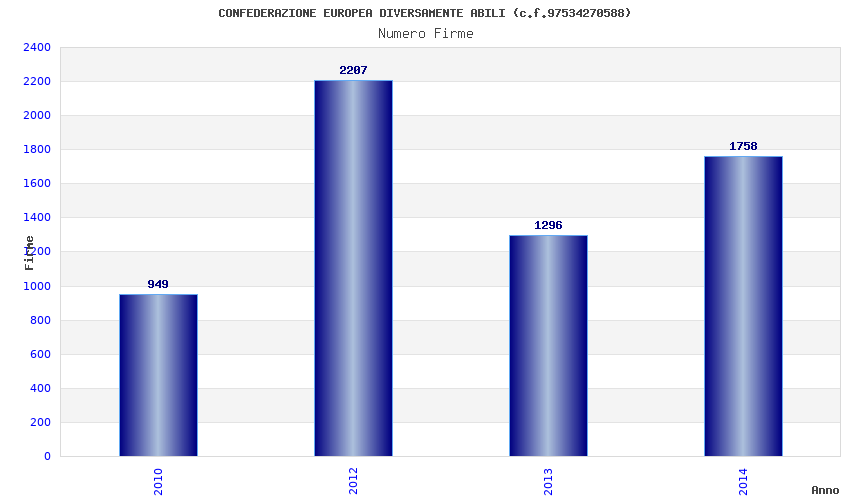| Anno | Firme | Importi | Media | Naz. | Reg. | Prov. | Comu. |