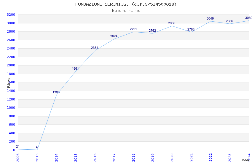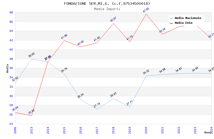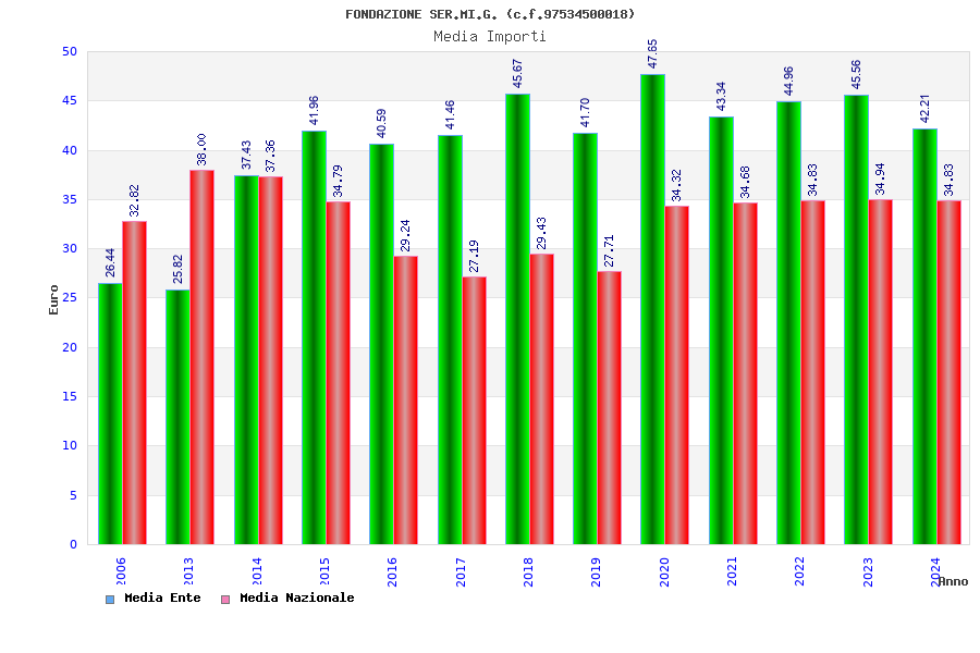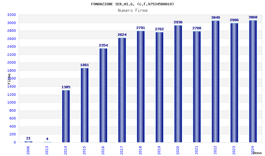 | Anno | Firme | Importi | Media | Naz. | Reg. | Prov. | Comu. |