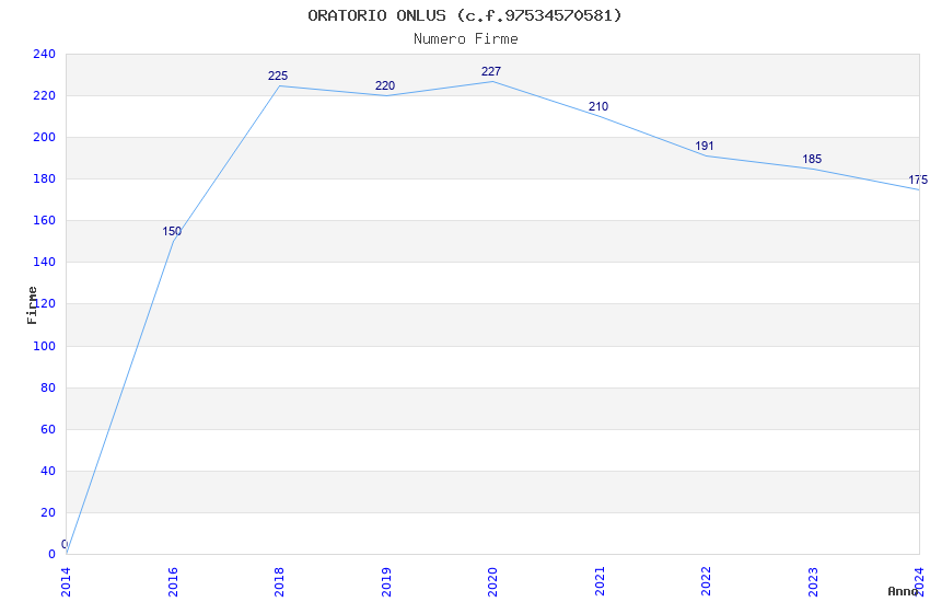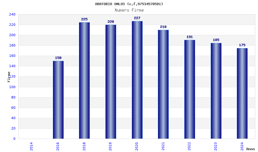 | Anno | Firme | Importi | Media | Naz. | Reg. | Prov. | Comu. |