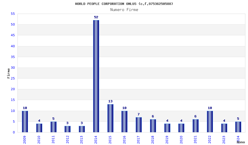 | Anno | Firme | Importi | Media | Naz. | Reg. | Prov. | Comu. |