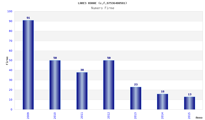 | Anno | Firme | Importi | Media | Naz. | Reg. | Prov. | Comu. |