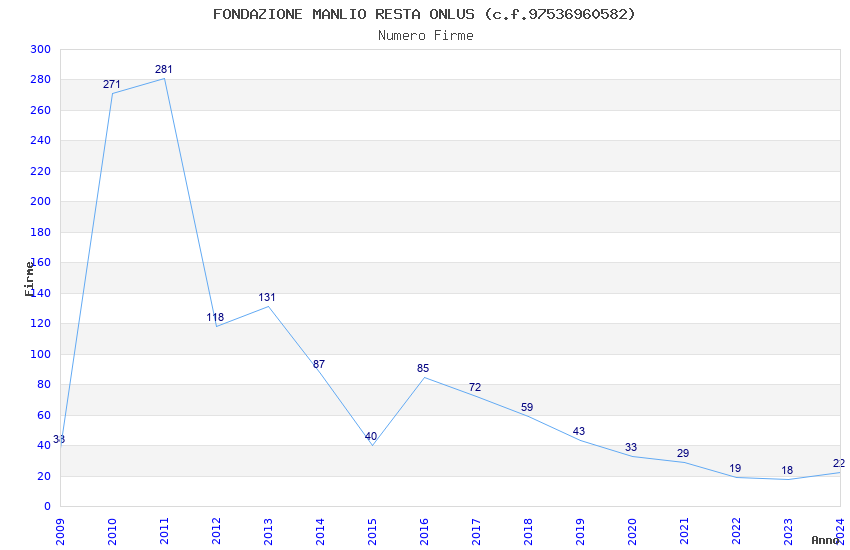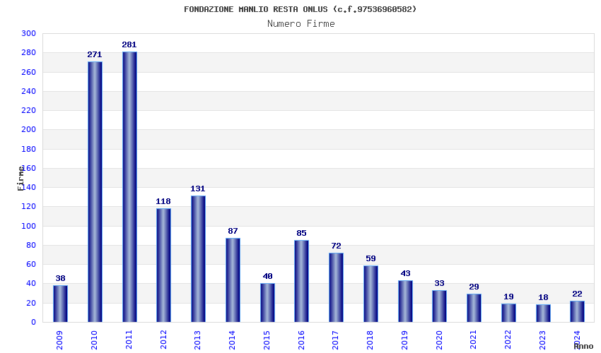 | Anno | Firme | Importi | Media | Naz. | Reg. | Prov. | Comu. |