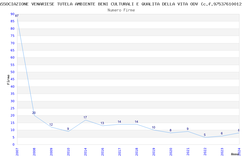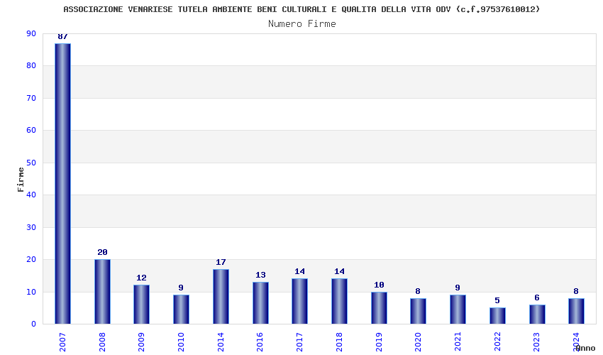 | Anno | Firme | Importi | Media | Naz. | Reg. | Prov. | Comu. |