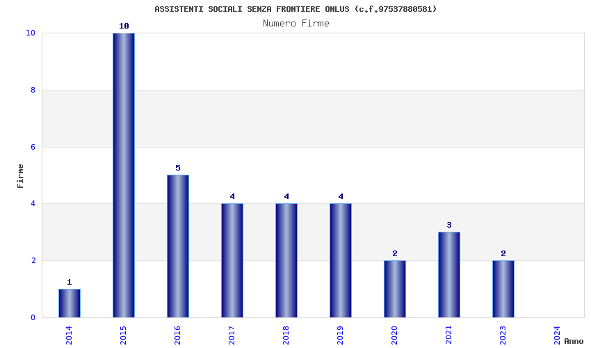 | Anno | Firme | Importi | Media | Naz. | Reg. | Prov. | Comu. |