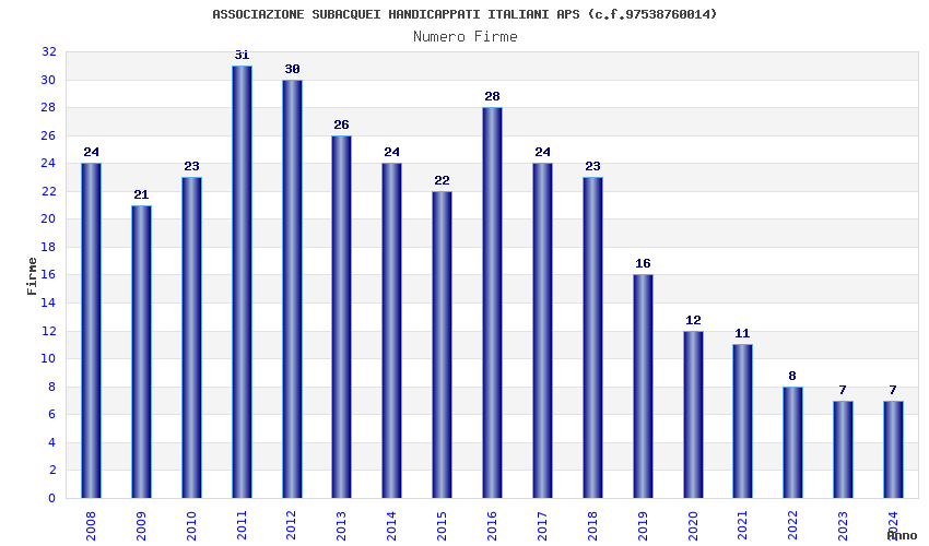 | Anno | Firme | Importi | Media | Naz. | Reg. | Prov. | Comu. |