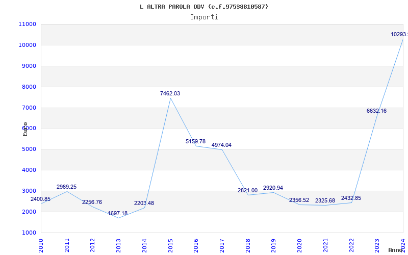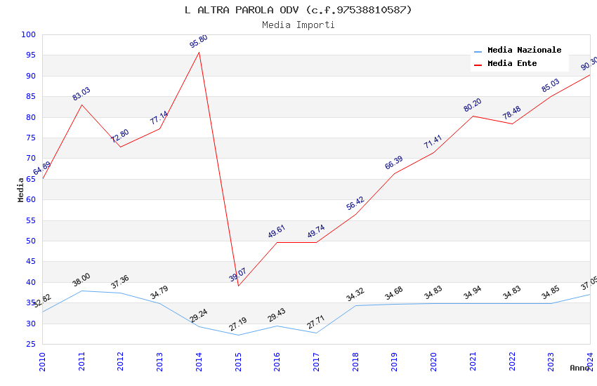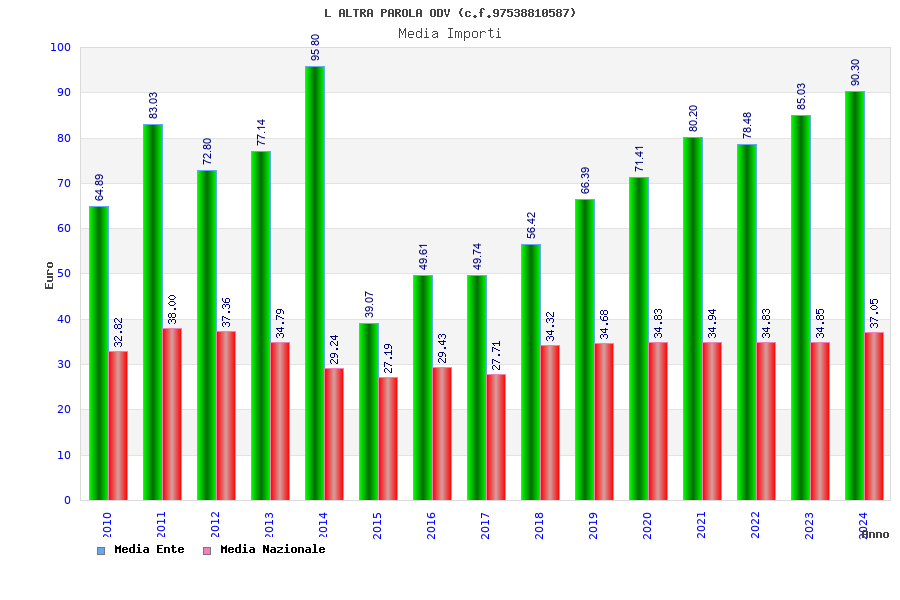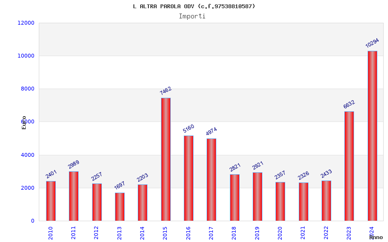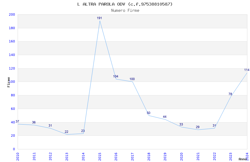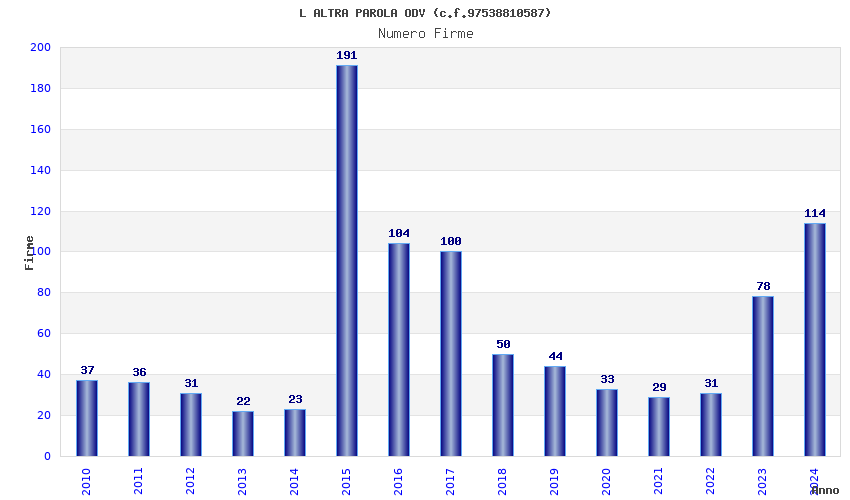 | Anno | Firme | Importi | Media | Naz. | Reg. | Prov. | Comu. |