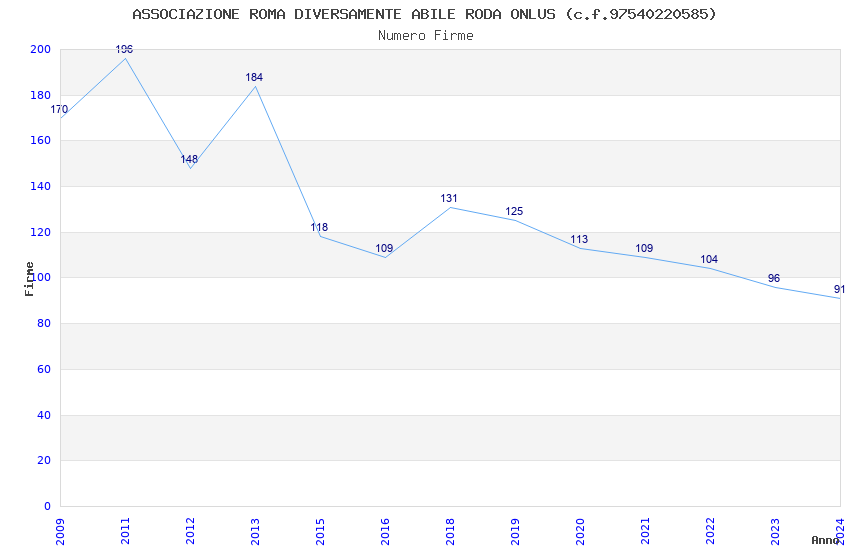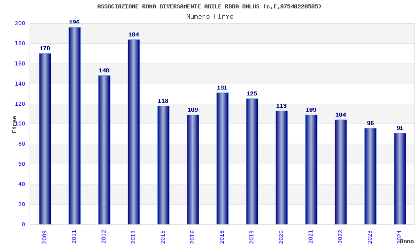 | Anno | Firme | Importi | Media | Naz. | Reg. | Prov. | Comu. |