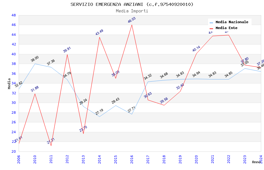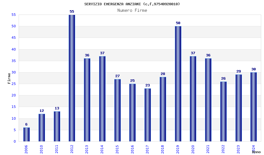 | Anno | Firme | Importi | Media | Naz. | Reg. | Prov. | Comu. |