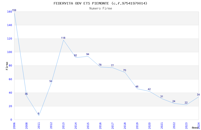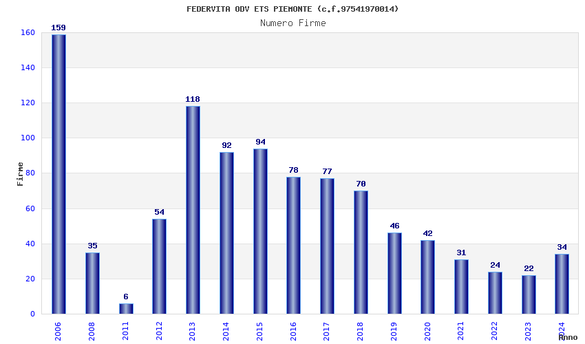| Anno | Firme | Importi | Media | Naz. | Reg. | Prov. | Comu. |