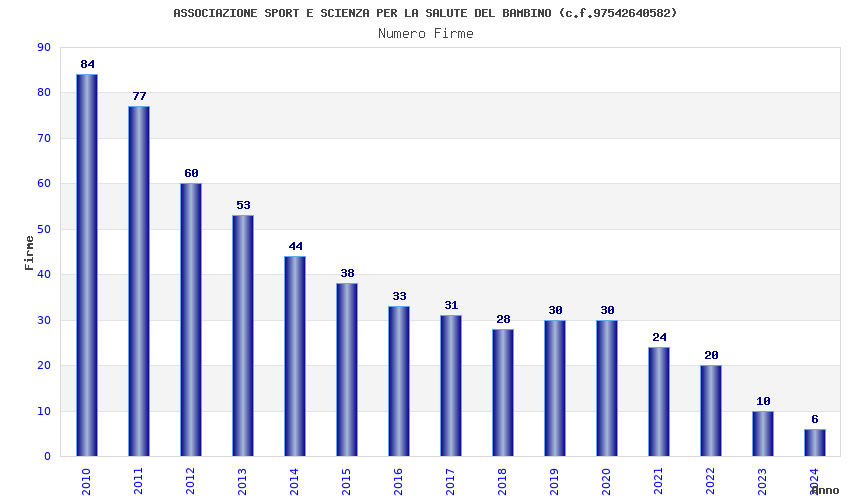 | Anno | Firme | Importi | Media | Naz. | Reg. | Prov. | Comu. |