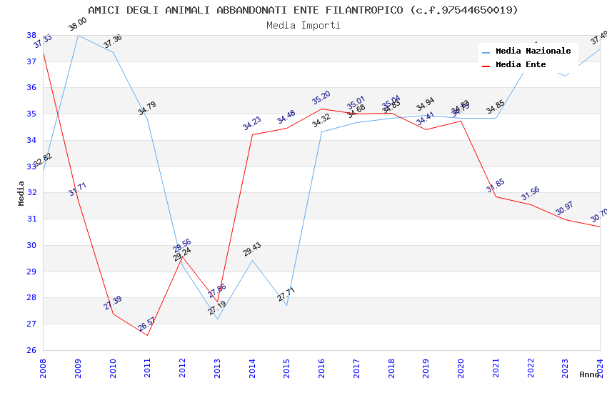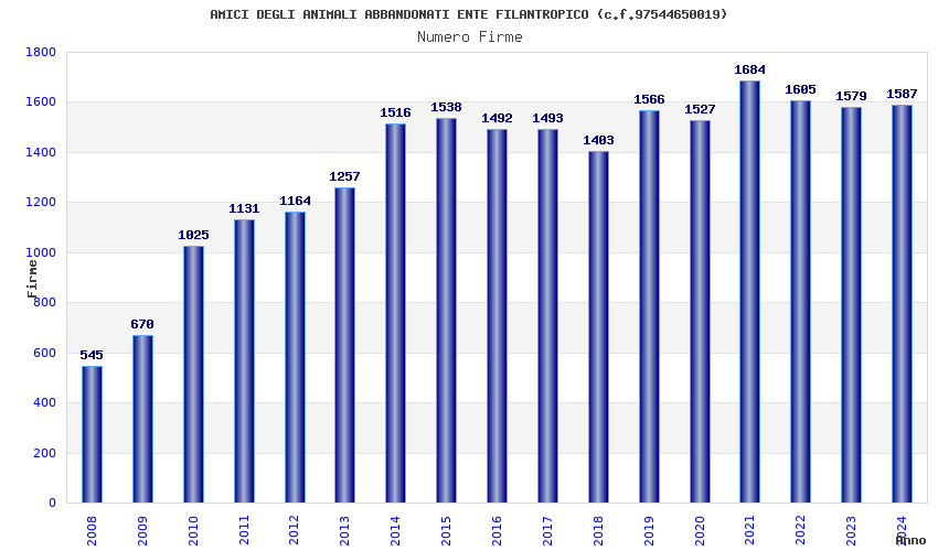 | Anno | Firme | Importi | Media | Naz. | Reg. | Prov. | Comu. |