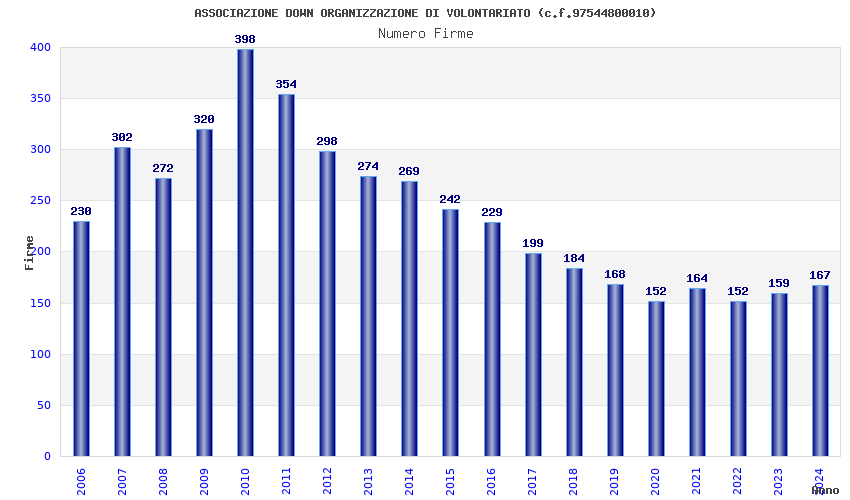 | Anno | Firme | Importi | Media | Naz. | Reg. | Prov. | Comu. |