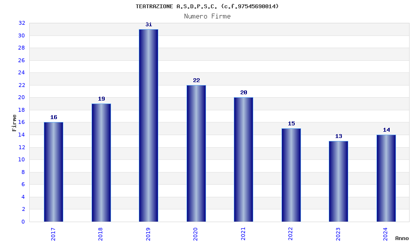 | Anno | Firme | Importi | Media | Naz. | Reg. | Prov. | Comu. |