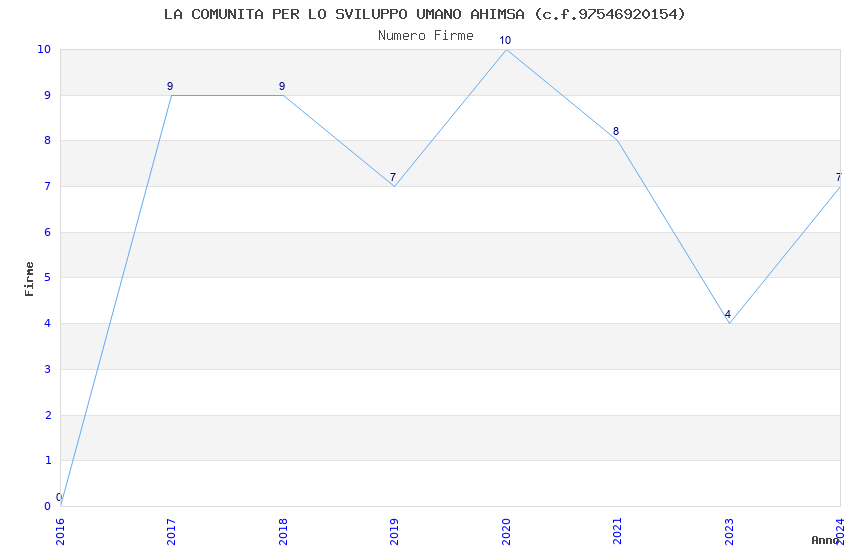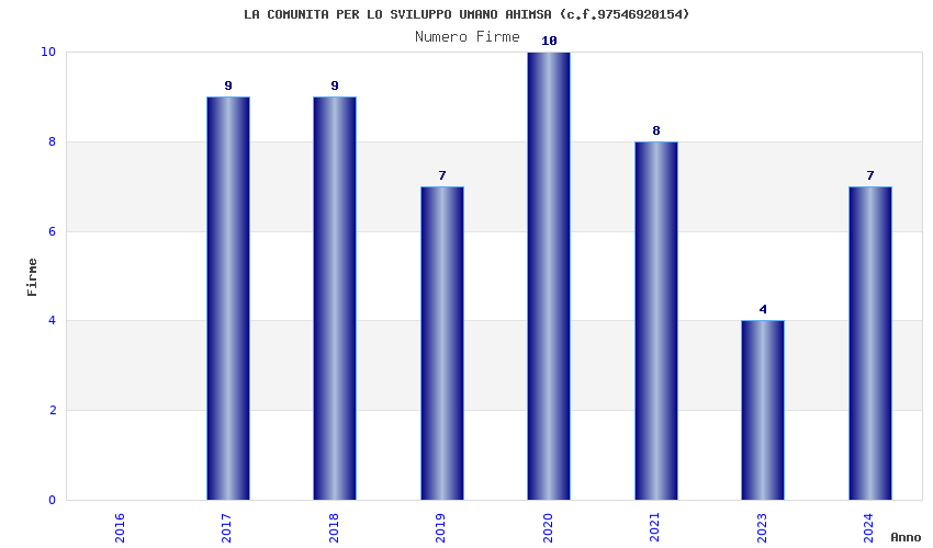 | Anno | Firme | Importi | Media | Naz. | Reg. | Prov. | Comu. |