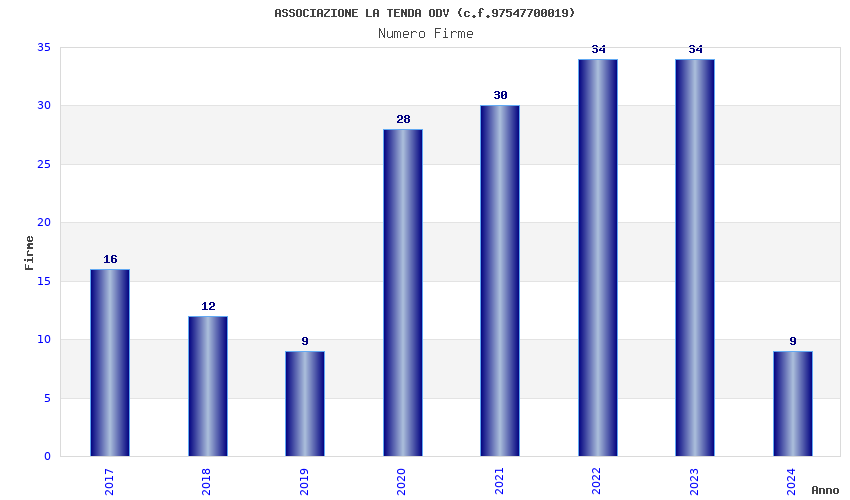 | Anno | Firme | Importi | Media | Naz. | Reg. | Prov. | Comu. |
