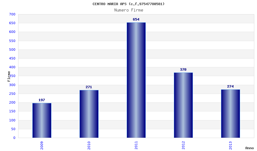 | Anno | Firme | Importi | Media | Naz. | Reg. | Prov. | Comu. |